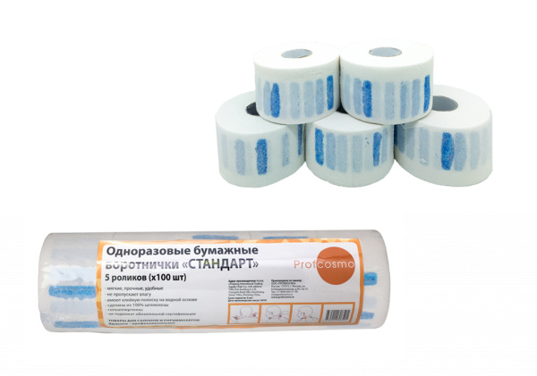 Воротнички на липучке предназначены для всех видов парикмахерских работ. Изготовлены из более плотной бумаги, чем вариант стандарт. Используются для предотвращения контакта кожи клиента с пеньюаром и защищают от остриженных волос. После использования воротничок выбрасывают.